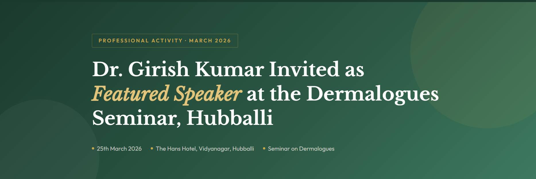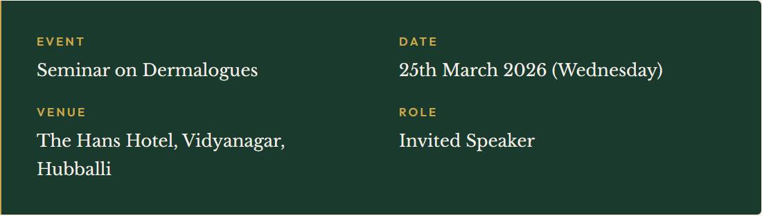 We are proud to announce that Dr. Girish Kumar, Founder and Chief Dermatologist at GSquare Skin & Hair Clinic, Hubli, was invited as a featured speaker at the prestigious Dermalogues Seminar held in Hubballi.