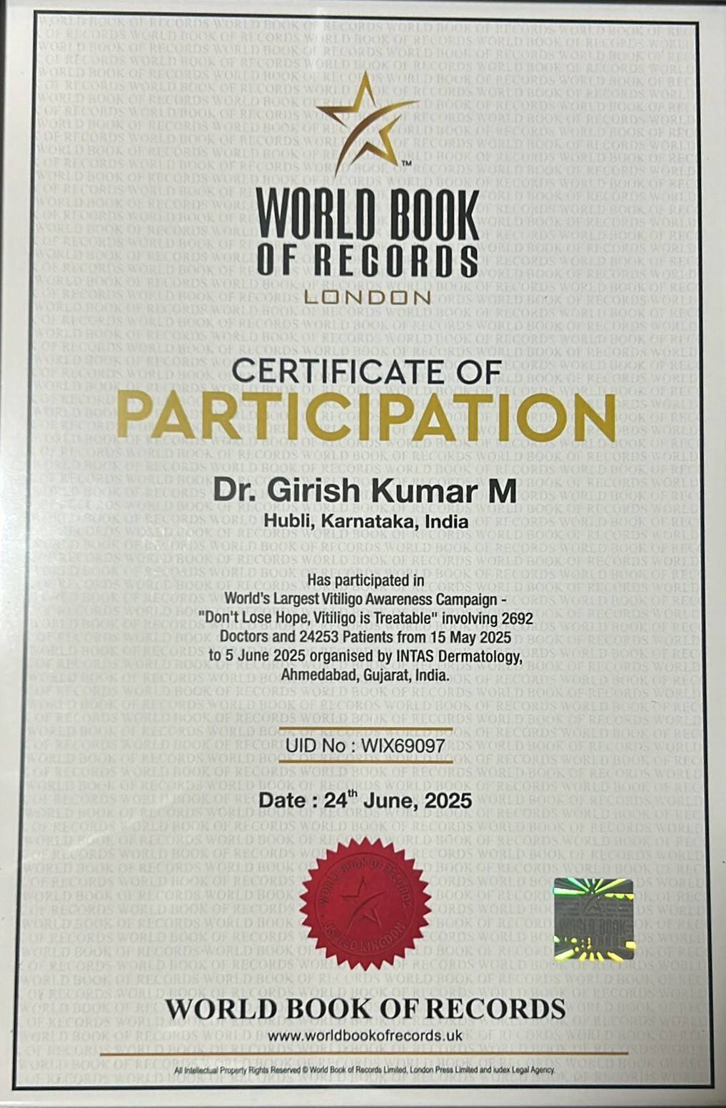 Dr. Girish’s inclusion in the World Book of Records places Hubli on the global dermatology map, strengthening trust among individuals seeking:
